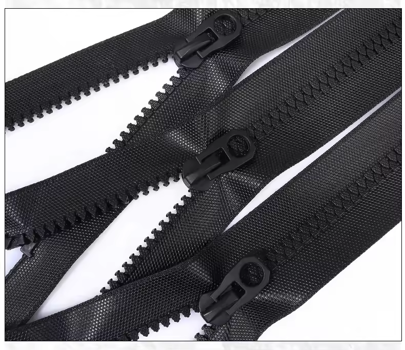 3# 5# 8# Fermeture éclair étanche en plastique avec curseur triangulaire et extrémité ouverte en résine.