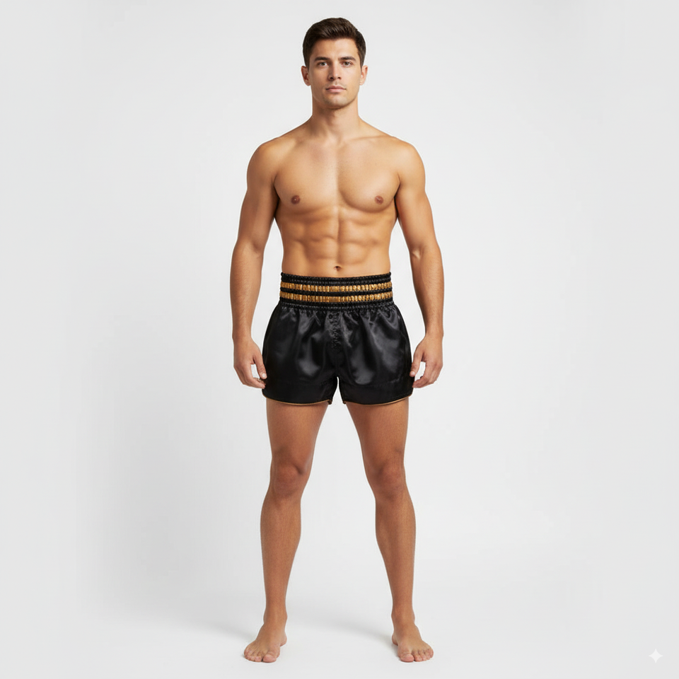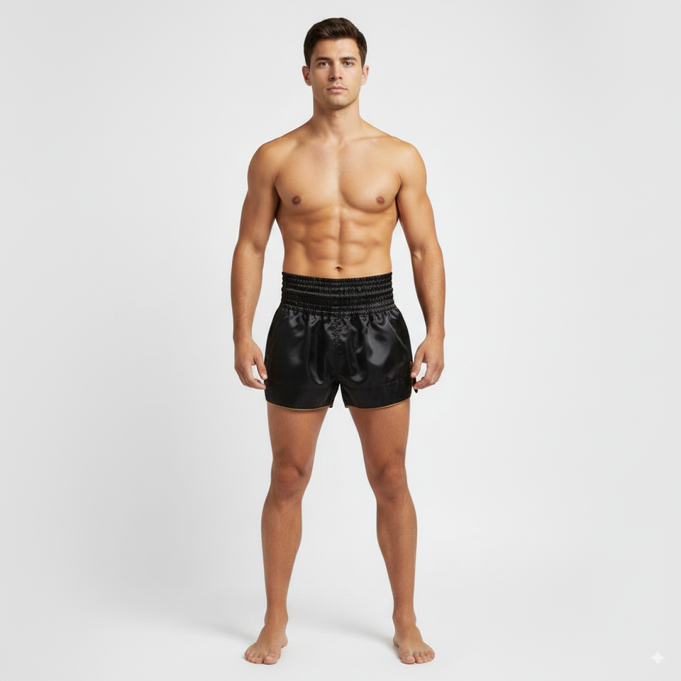 Shorts de Muay Thai personnalisés en gros avec logo, design sublimé, durables, extensibles, séchage rapide, noirs, MMA, Muay Thai, shorts de combat