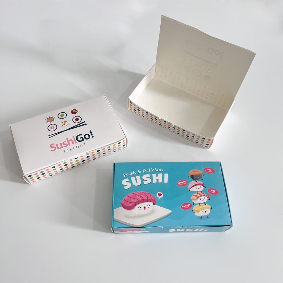 Boîte d'emballage de sushi logo personnalisé, boîte de plateau de sushi kraft jetable biodégradable boîte d'emballage de restauration rapide