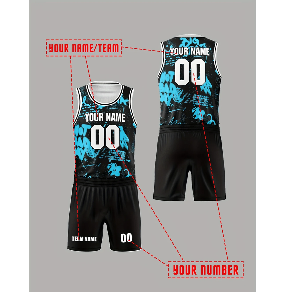 Vêtements de basket-ball personnalisables en gros respirant et à séchage rapide, design abstrait multicolore idéal pour l'uniforme de basket-ball d'entraînement