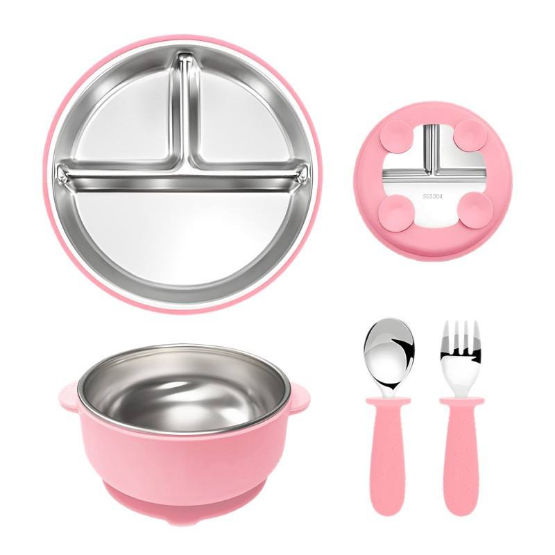 Vaisselle pour bébé en acier inoxydable 304 de qualité alimentaire, sans BPA, écologique, personnalisable en gros, ensemble de repas pour enfants en silicone