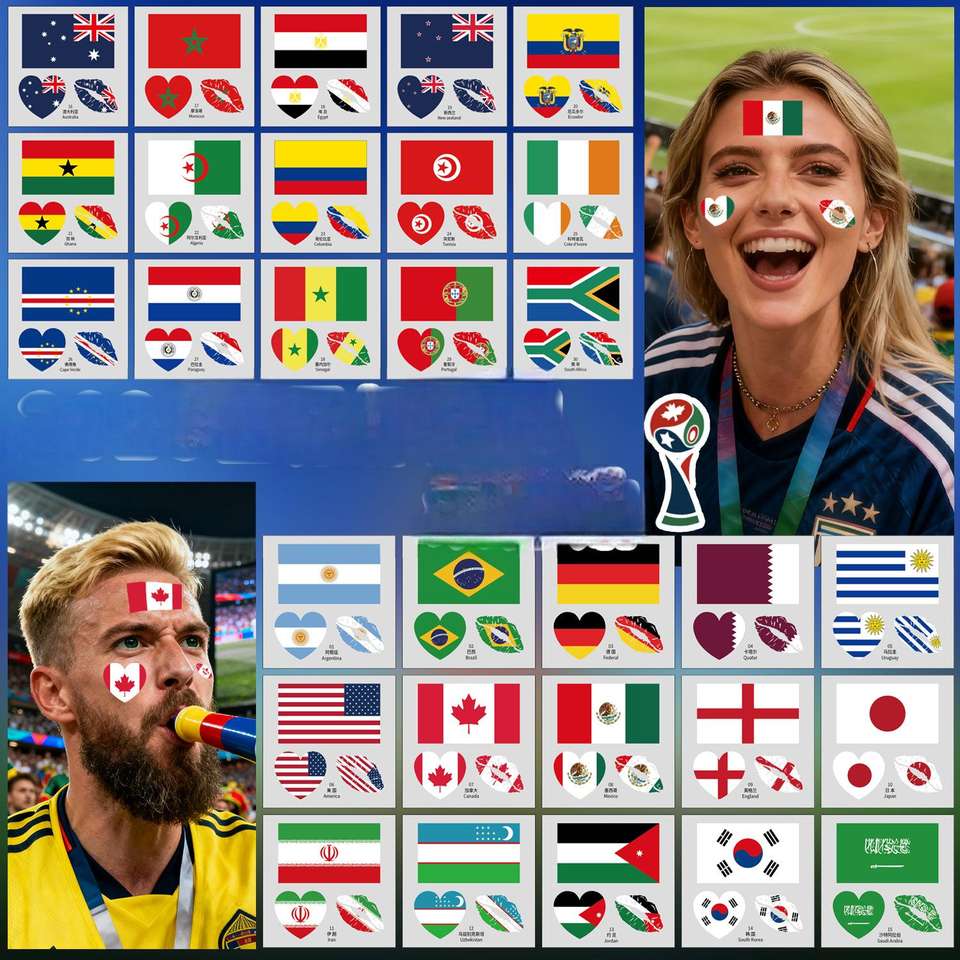 Autocollants de tatouage temporaire personnalisables et écologiques pour supporters de football, parfaits pour les événements promotionnels et le branding des clubs le jour des matchs.