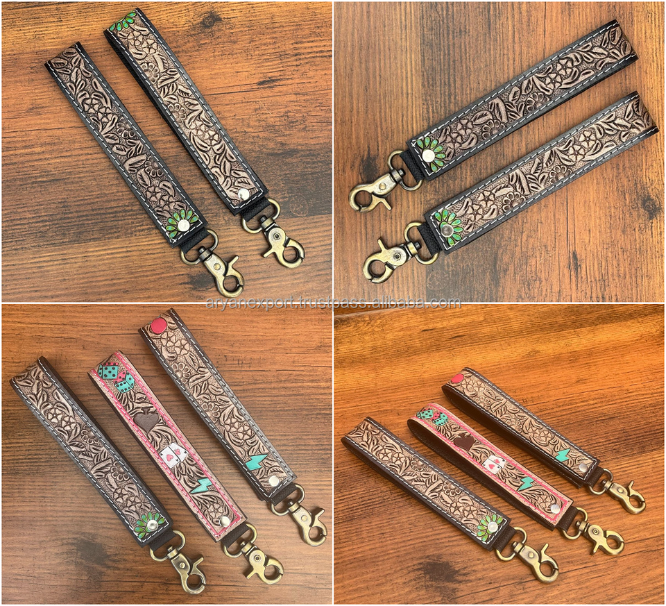 Product Name:Hand Tooled Leather Lanyard Wristlet Keychain