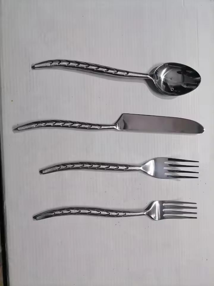 Vente en gros de couverts en métal avec logo personnalisable fabriqués à la main avec un design orné et une caractéristique écologique pour toute occasion
