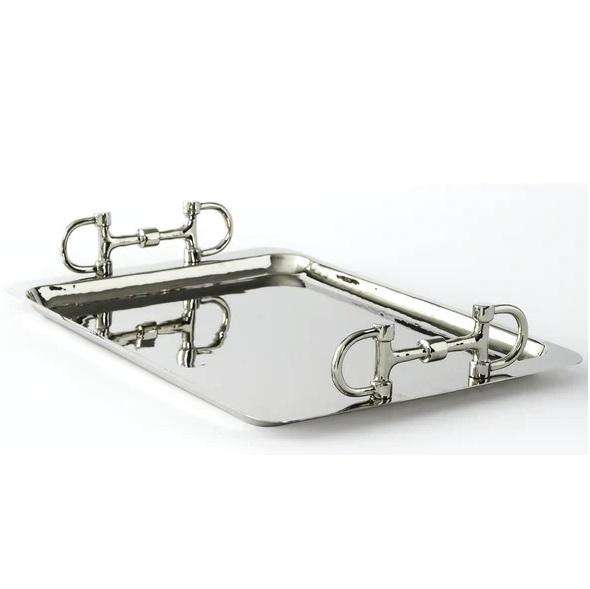 Plateau de service en métal avec logo personnalisable en gros écologique avec finition brillante antique et poignée unique