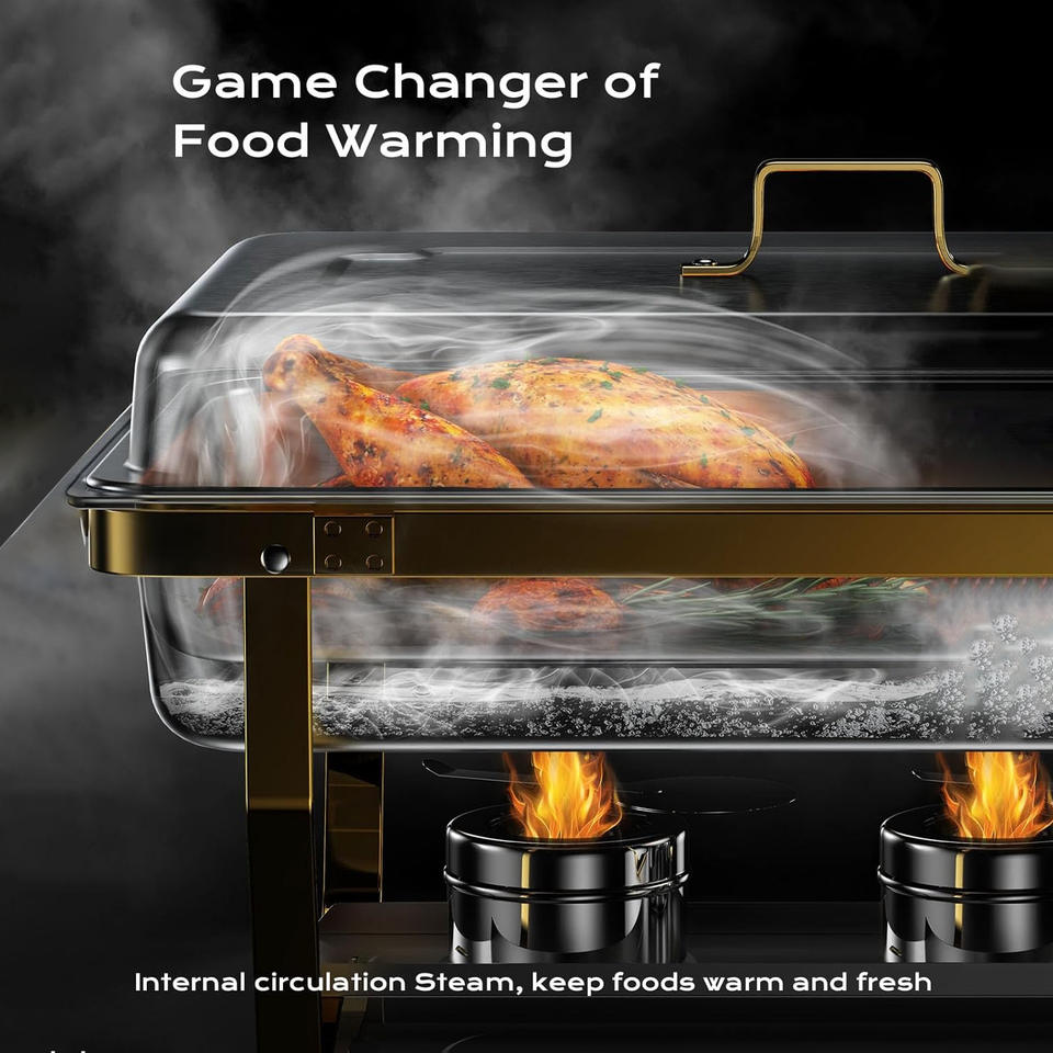 Vente en gros de chauffe-plats rectangulaires personnalisables en acier inoxydable pour buffet avec chauffage à l'alcool Réchaud pour repas Réchaud à buffet à compartiment