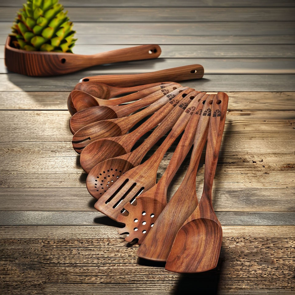 Service de vaisselle en bambou durable personnalisable en gros collection d'ustensiles en bois naturel pour la cuisine