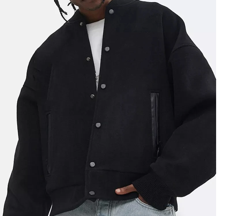 Blouson universitaire en laine personnalisable unisexe, style baseball, hiver, décontracté, service OEM, réversible, respirant, épais, noir, style Letterman