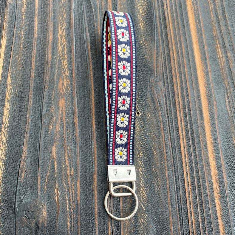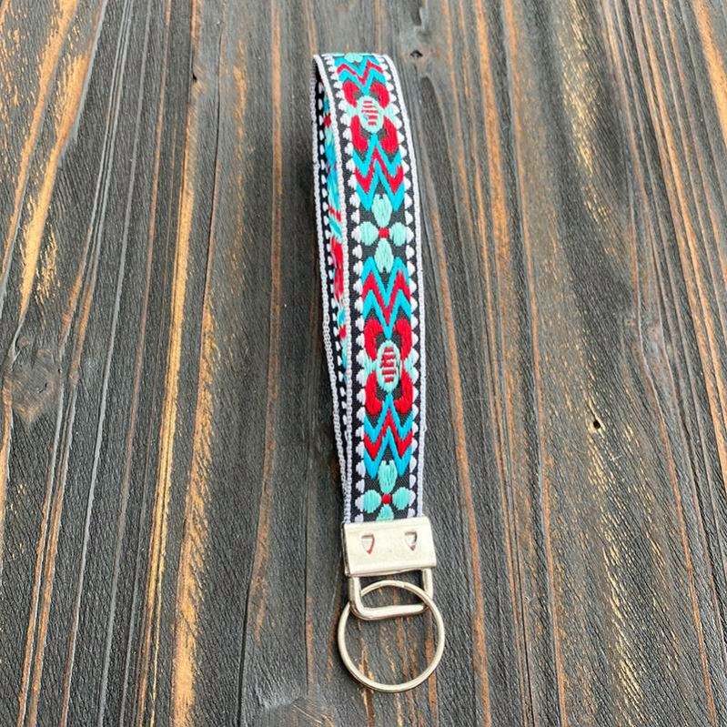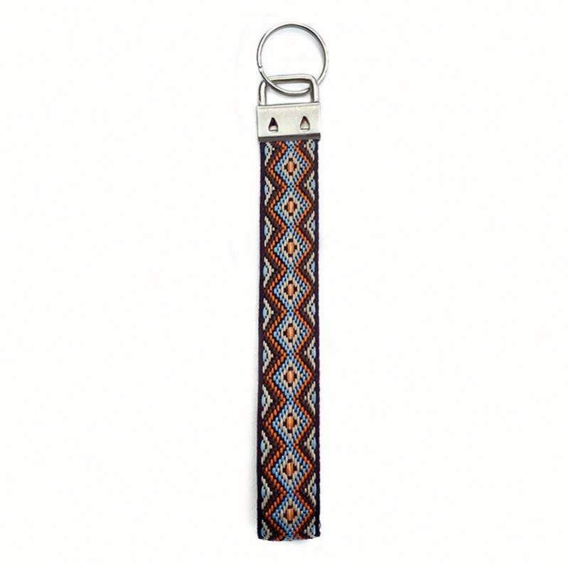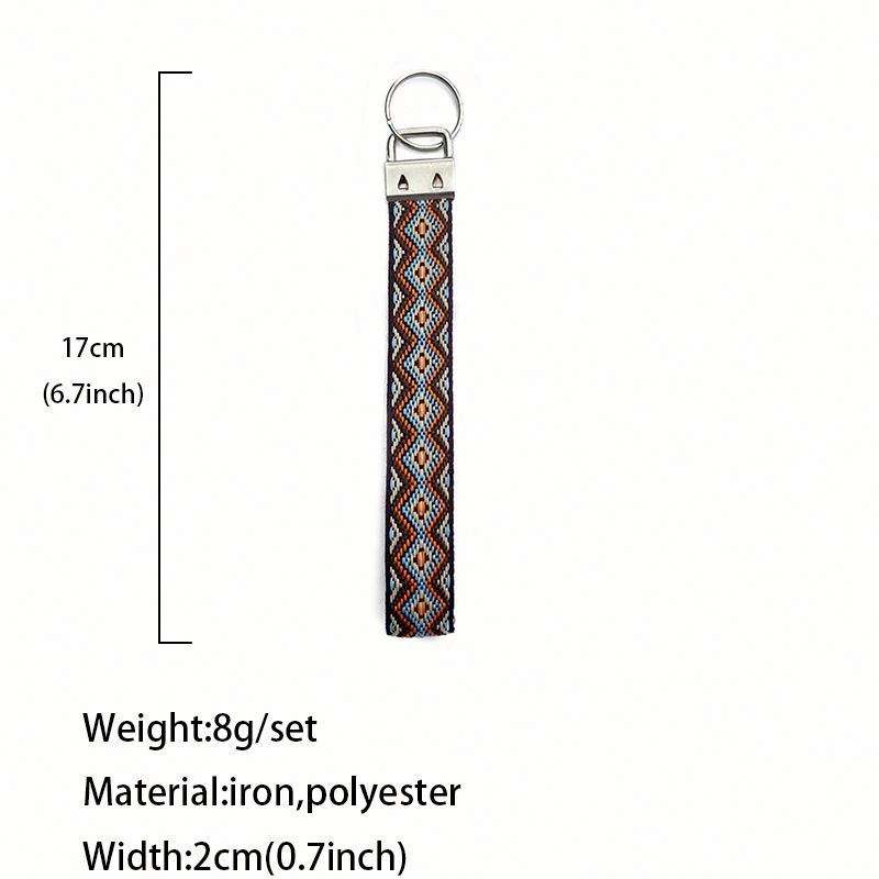Porte-clés en alliage de zinc brodé personnalisable en gros, bracelet tissé à la main de style ethnique, long pendentif rétro