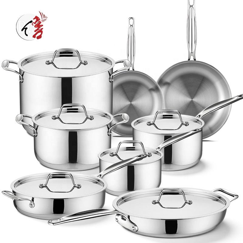Batterie de cuisine en acier inoxydable triple épaisseur