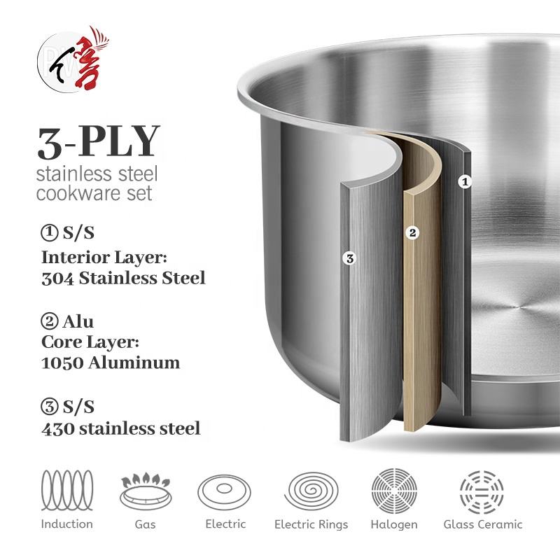 Nom du produit:Batterie de cuisine en acier inoxydable triple épaisseur