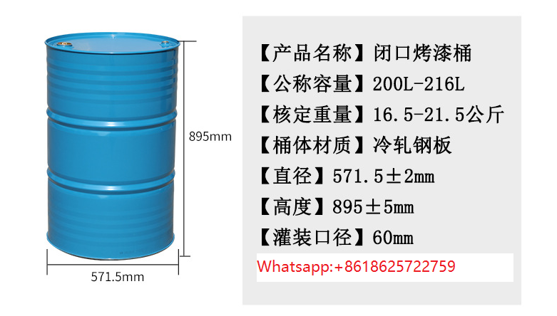Support de personnalisation en gros 200L peinture de cuisson en métal vert 200kg tambour fermé tambour d'huile de tôle de fer chimique industriel