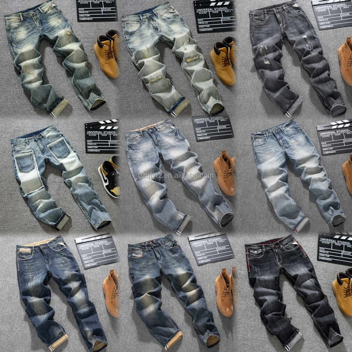 Jeans design pour hommes de haute qualité vintage effet guidon jeans adaptés aux jeans pour hommes de taille plus Vente en gros