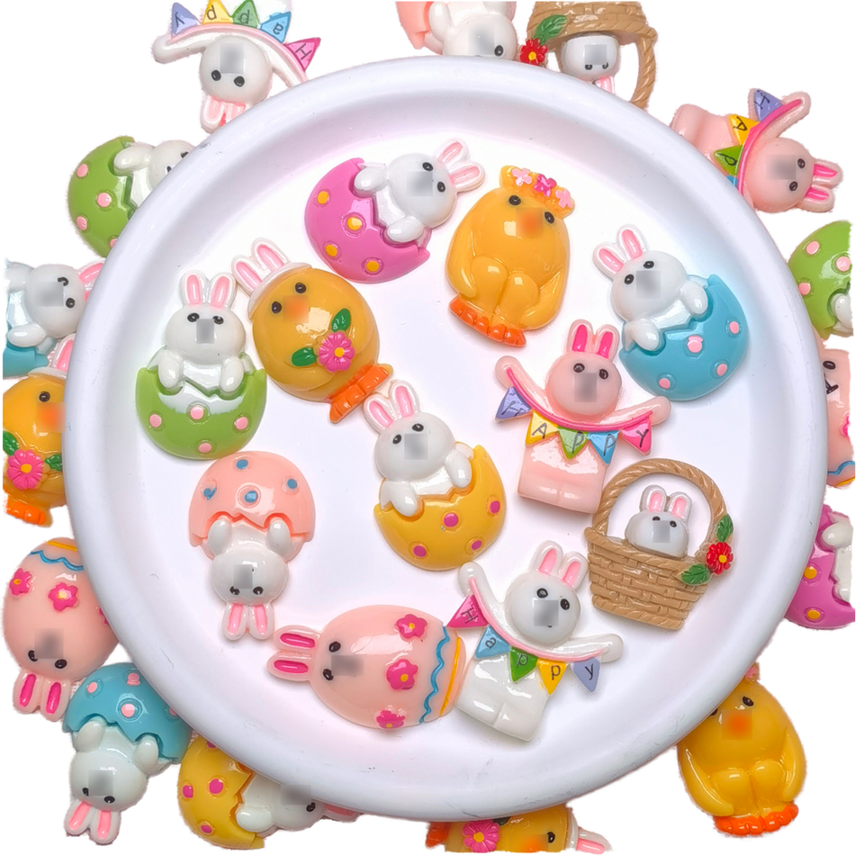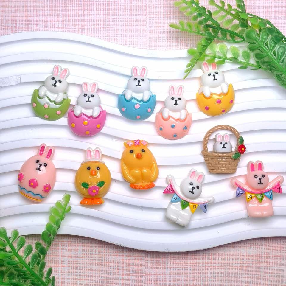 Ensemble de collection de figurines de lapins et de poussins en résine à dos plat, peintes artistiquement, pour artisanat et cabochons, personnalisables en gros, thème féerique