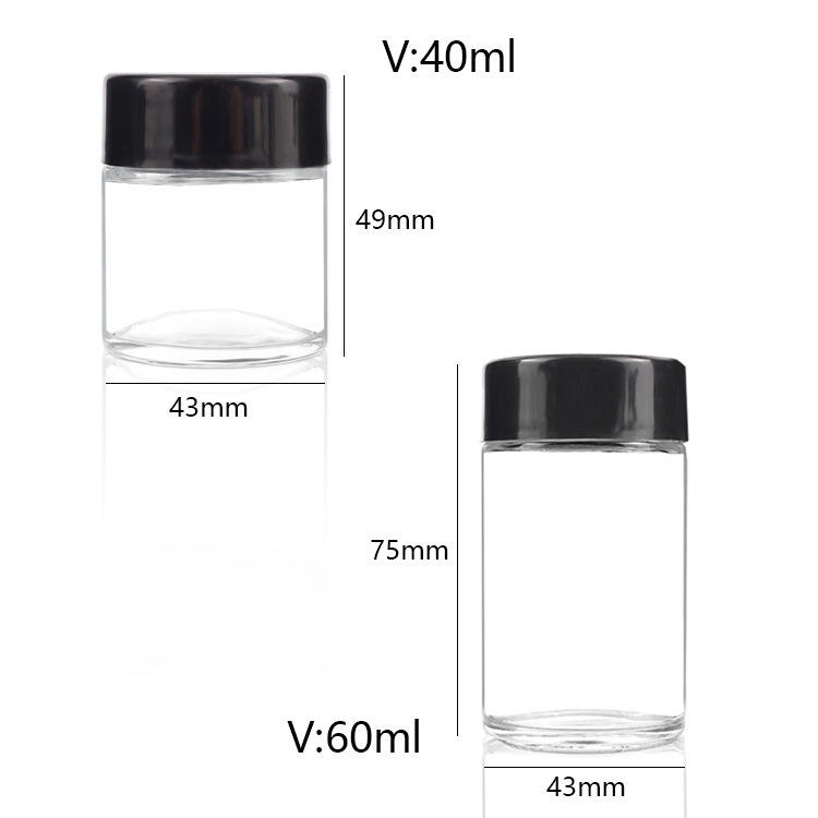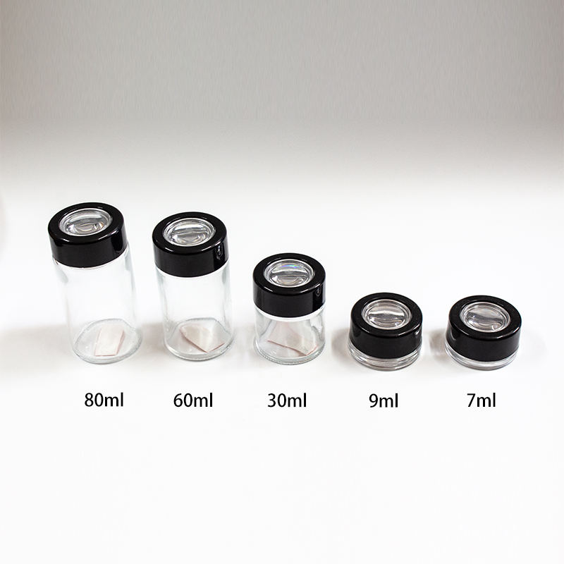 Vente en gros Emballage personnalisé 7ml 9ml 30ml 60ml 80ml Bocaux en verre à l'épreuve des enfants Récipient alimentaire pour le thé avec bouchons grossissants
