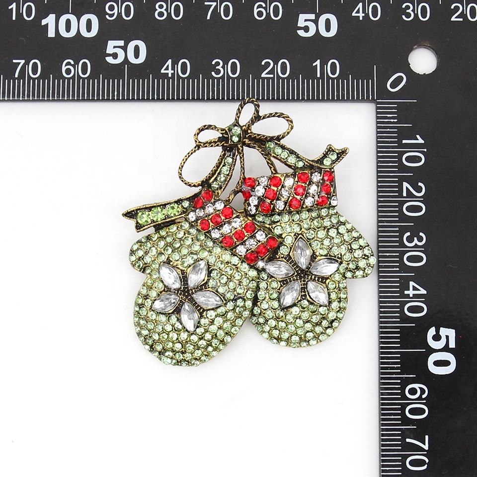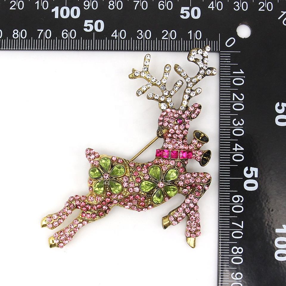 Broche personnalisée en gros pour Noël, motif cerf, fleur de prunier, renne et gant vert, ornée de strass roses, idéale comme cadeau de Noël