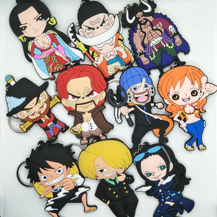 Packaging Details:Poly sac. Porte-clés de dessin animé mignon personnalisé en gros porte-clés en caoutchouc souple petit cadeau pour enfant porte-clés Anime une pièce