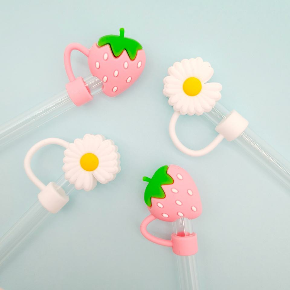 Lot de 4 capuchons de paille en silicone personnalisables, écologiques et réutilisables, mignons, accessoires pour gobelets et couvercles de paille, pour la vente en gros