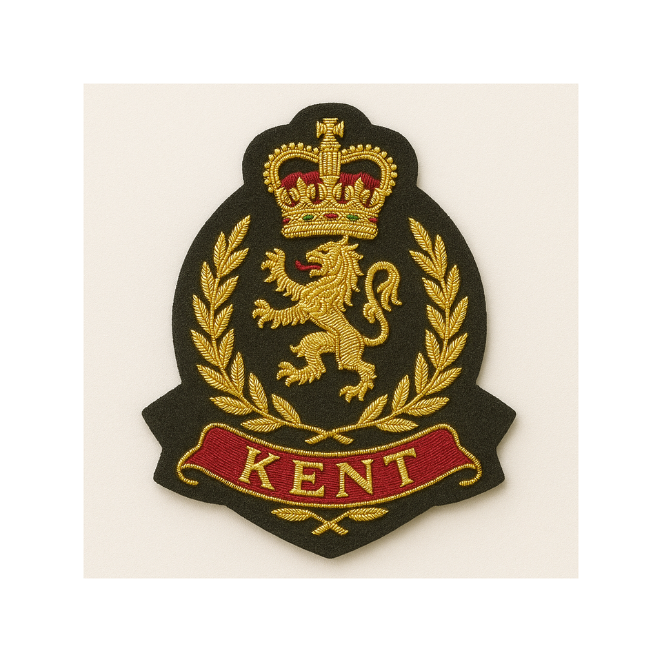 Badges brodés faits main personnalisés en gros, fil de bullion doré, style luxueux, attache à épingle de sûreté, OEM ODM, badges métalliques de luxe