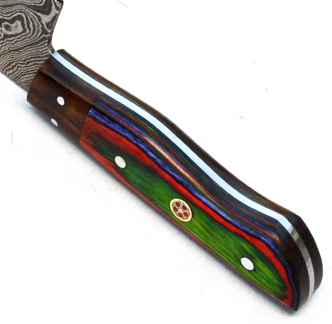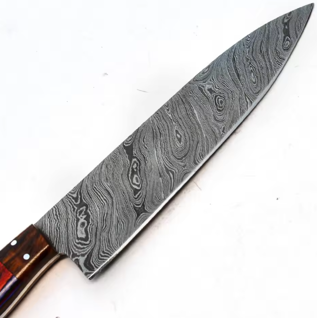 Couteau de chef moderne ambidextre fait main de haute qualité, personnalisé en gros, en acier Damas à haute teneur en carbone, compatible lave-vaisselle, OEM supplémentaire