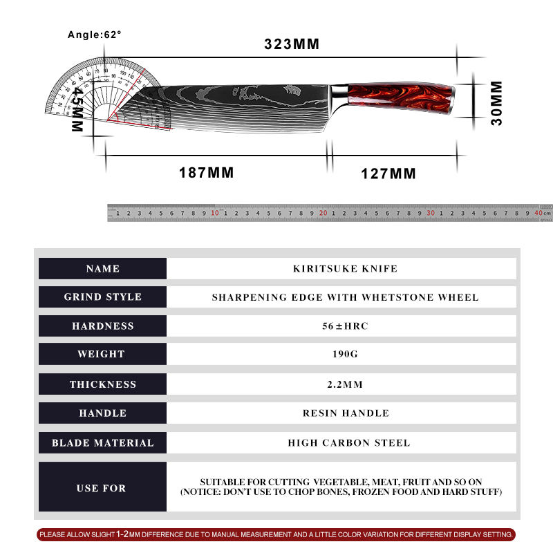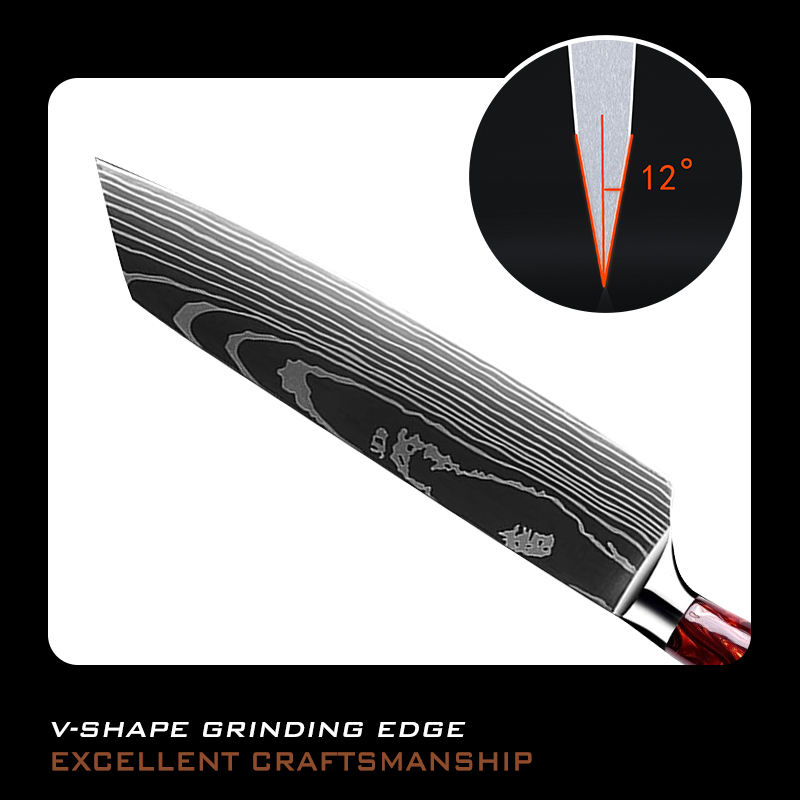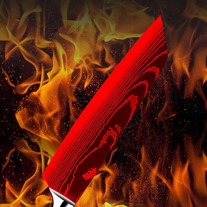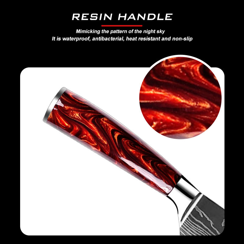 Couteau de cuisine en acier à haute teneur en carbone de haute qualité personnalisé en gros Chef de cuisine Couteau à motif laser damas avec manche en résine