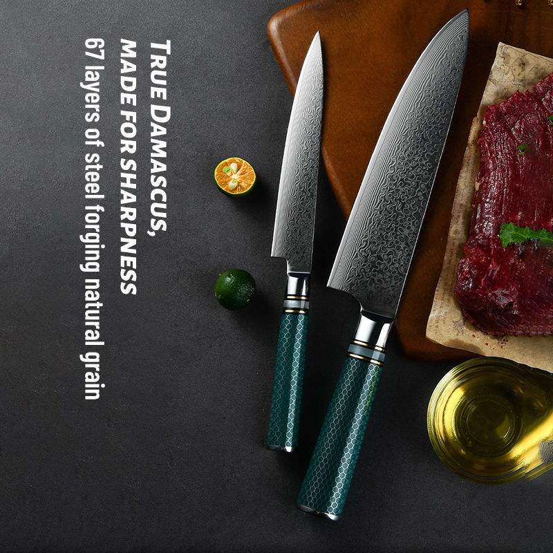 Couteau de chef de cuisine professionnel en acier Damas de qualité supérieure avec manche en résine Vente en gros personnalisé haute qualité OEM ODM