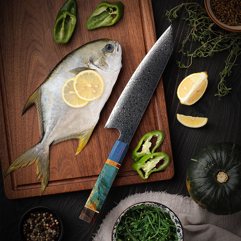 Couteau de chef japonais en acier Damas fait main moderne de haute qualité PRESTIGE BLADES, personnalisé en gros