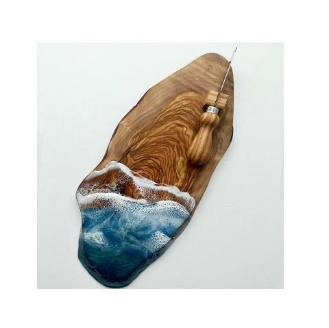 Planche à découper en résine époxy de luxe, en bois d'acacia Olive, multi-usage, vente en gros