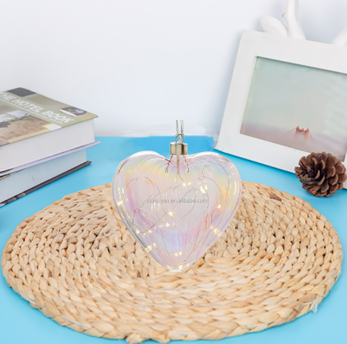 Gros personnalisé irisé LED suspendus coeur de verre lumières pour la maison décorative