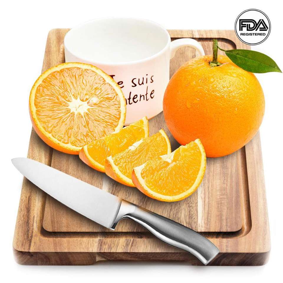 Grandes planches à fromage rectangulaires en acacia personnalisées en gros pour la charcuterie avec auges à jus pratiques