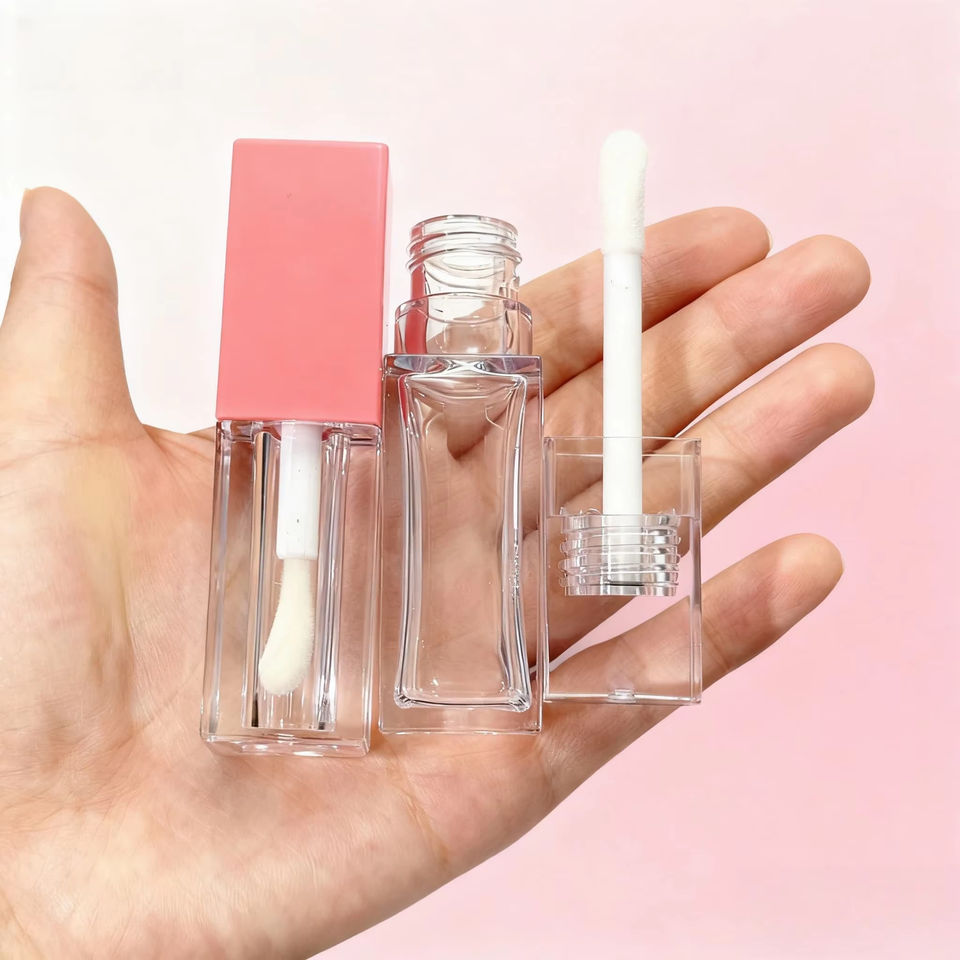 Tube de rouge à lèvres carré vide personnalisé avec logo, conteneur transparent pour rouge à lèvres avec grande brosse, vente en gros