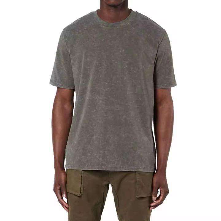T-shirts décontractés pour hommes à manches courtes, personnalisables avec logo, effet délavé à l'acide, vente en gros