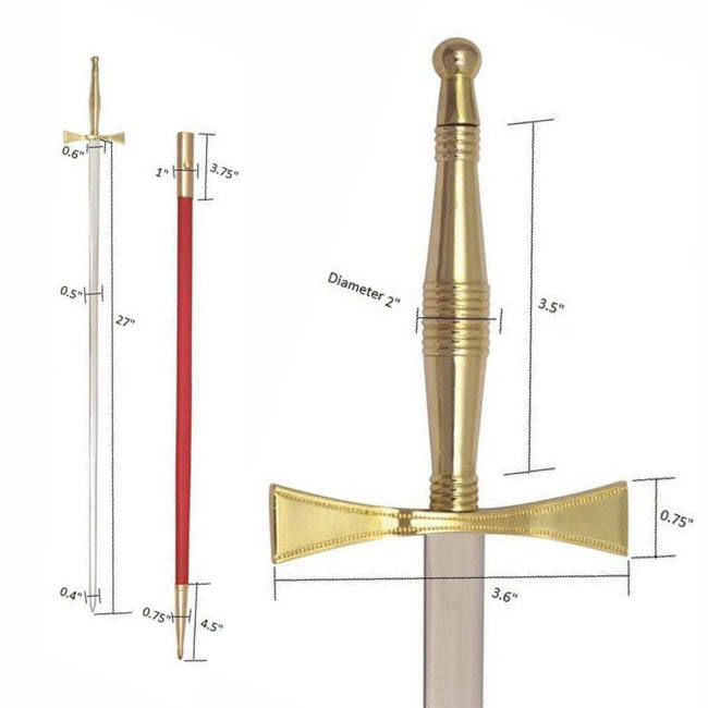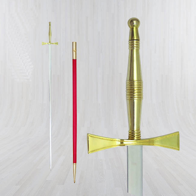 Épée maçonnique personnalisée en gros avec poignée dorée et fourreau rouge, lame en acier Damas, service OEM, garantie de 3 ans, fournisseur