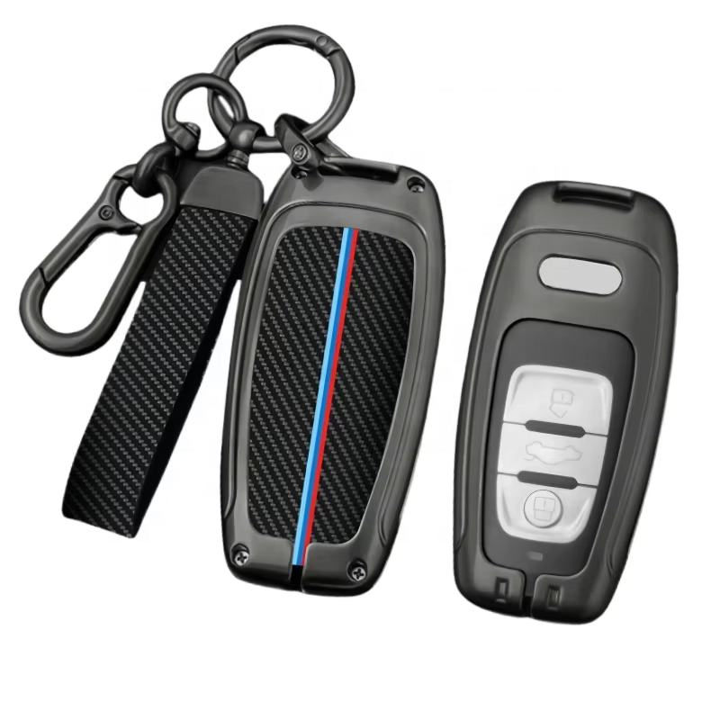 Porte-clés de voiture en métal personnalisé en gros Porte-clés long en cuir texturé en fibre de carbone de luxe pour Audi BMW et Nissan Innovation