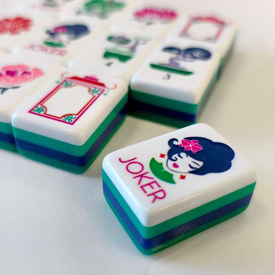 Ensemble de Mahjong Vert en Acrylique à Quatre Couches Personnalisé en Gros, Tuiles de Mahjong Américain Gravées, Écologiques et Durables