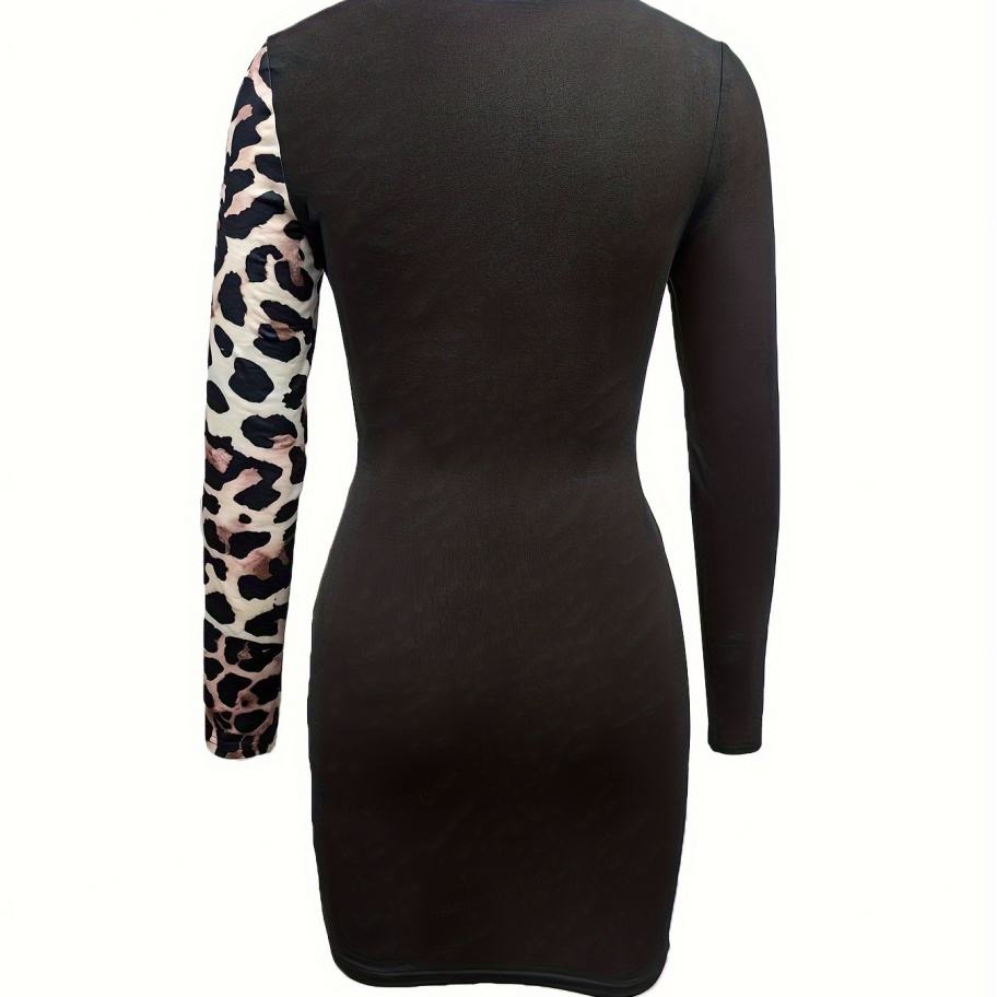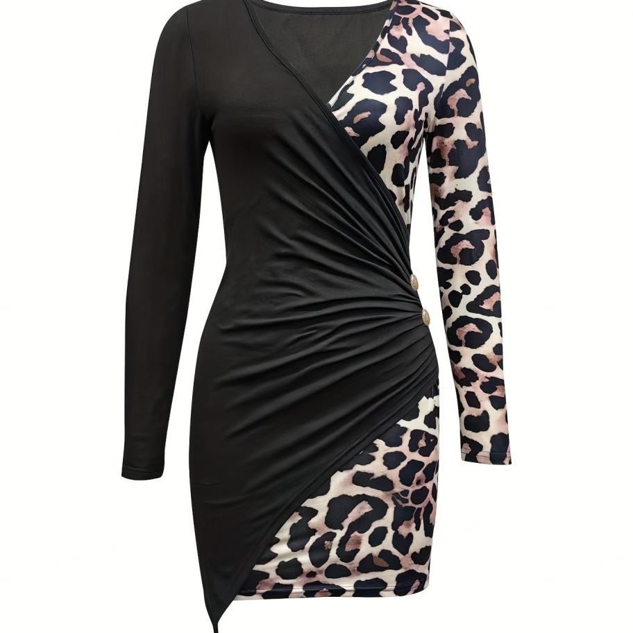 Wholesale Customized OEM High Quality Womens Midi Temperament commuter Asymmetric Crinkle Fold V-neck Leopard Print Elastic