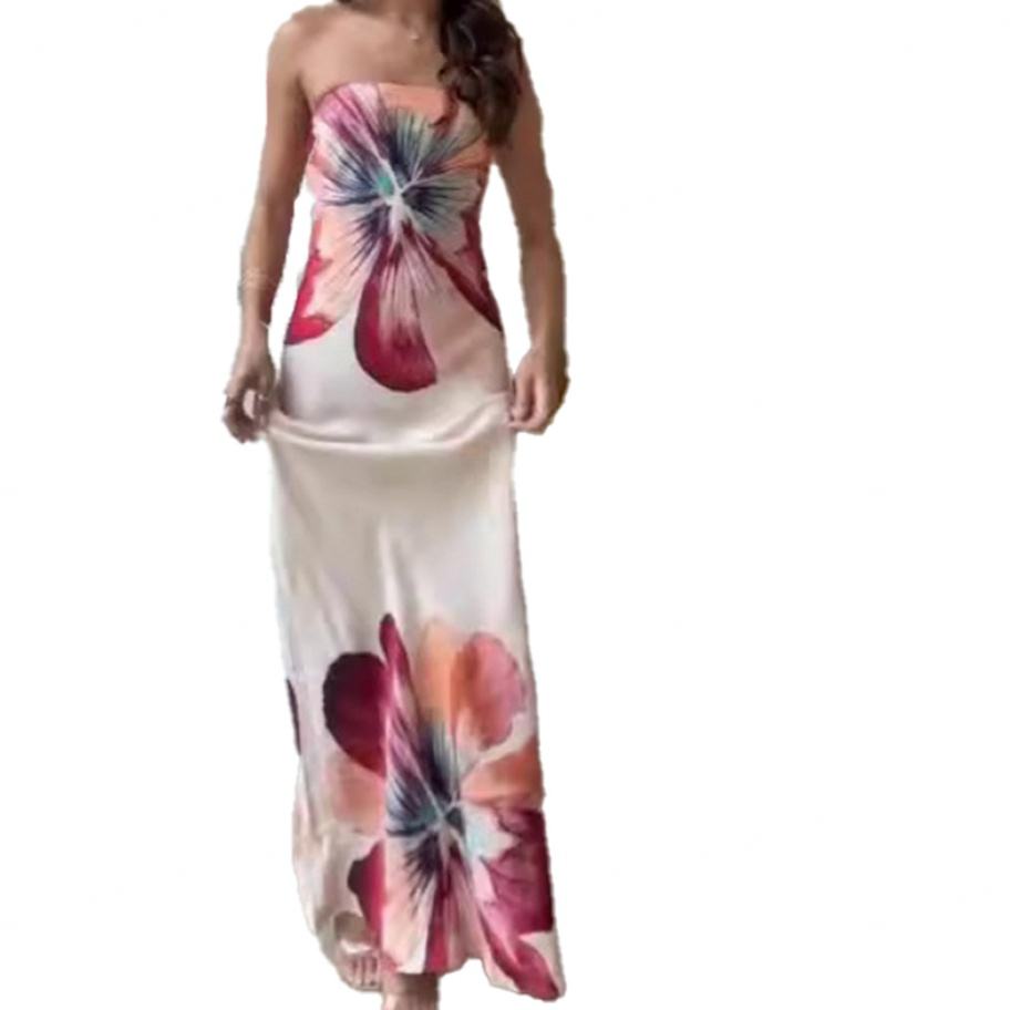 Robe longue bustier sexy pour femme, personnalisée, OEM, de haute qualité, naturelle, lavable, avec imprimé tendance, vente en gros