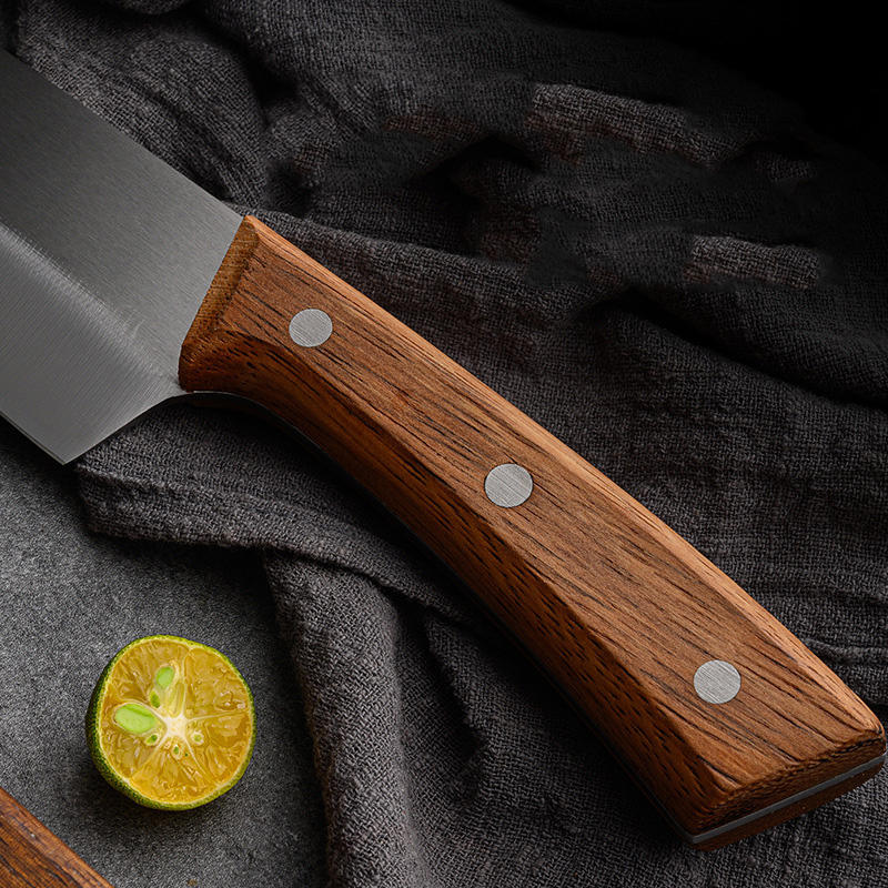 Vente en gros de coutellerie OEM ODM personnalisée Couteau de chef japonais Couteau de cuisine en métal avec lame en acier au carbone Manche en bois