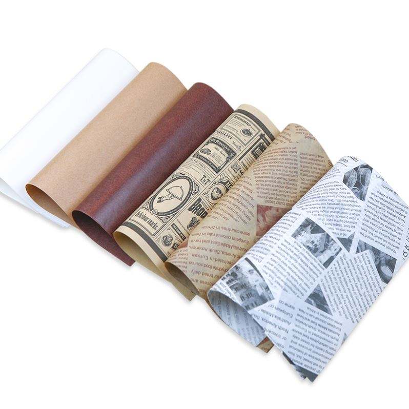 Papier d'emballage personnalisé en gros, résistant à l'huile, en papier sulfurisé/glassine/kraft/PE/aluminisé, pour l'emballage alimentaire et l'utilisation en boulangerie
