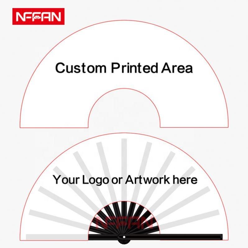 Grand éventail à main décoratif Rave Clack pliable en tissu de bambou personnalisé personnalisé en gros