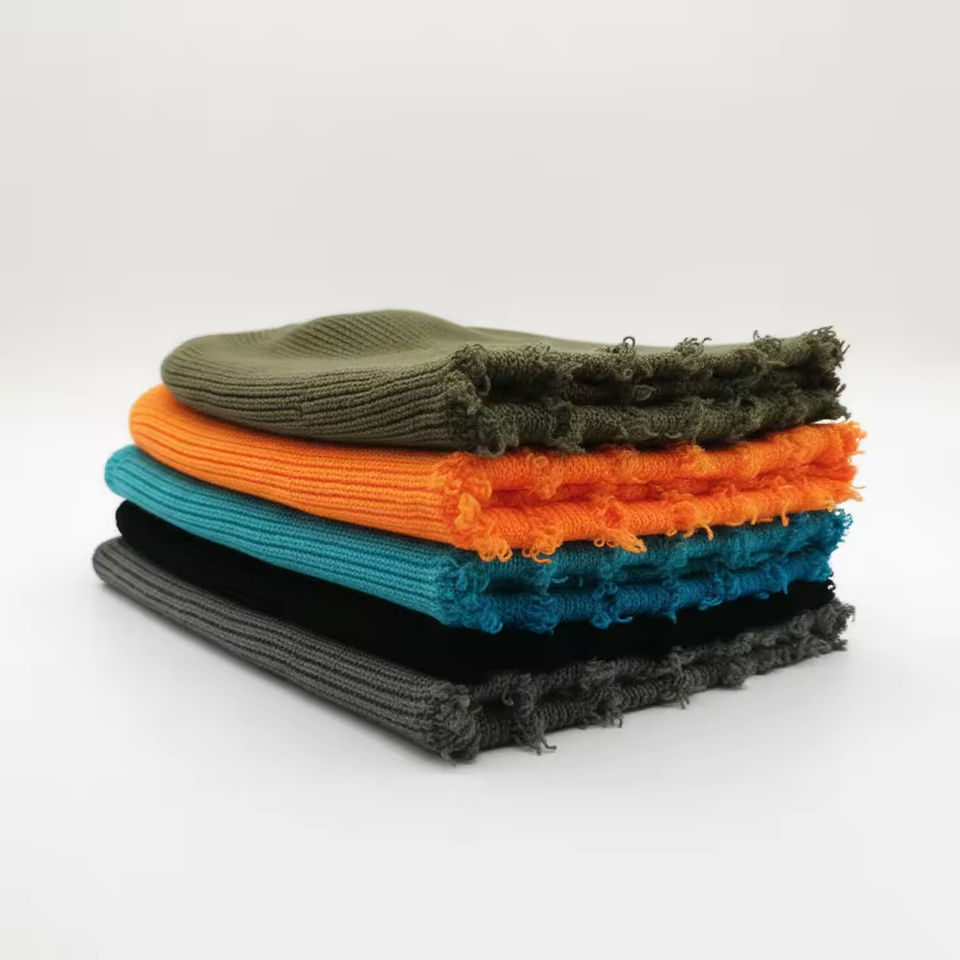 Bonnet en acrylique côtelé uni personnalisé, sans revers, avec bas de bonnet effet vieilli, en laine cachemire, vente en gros