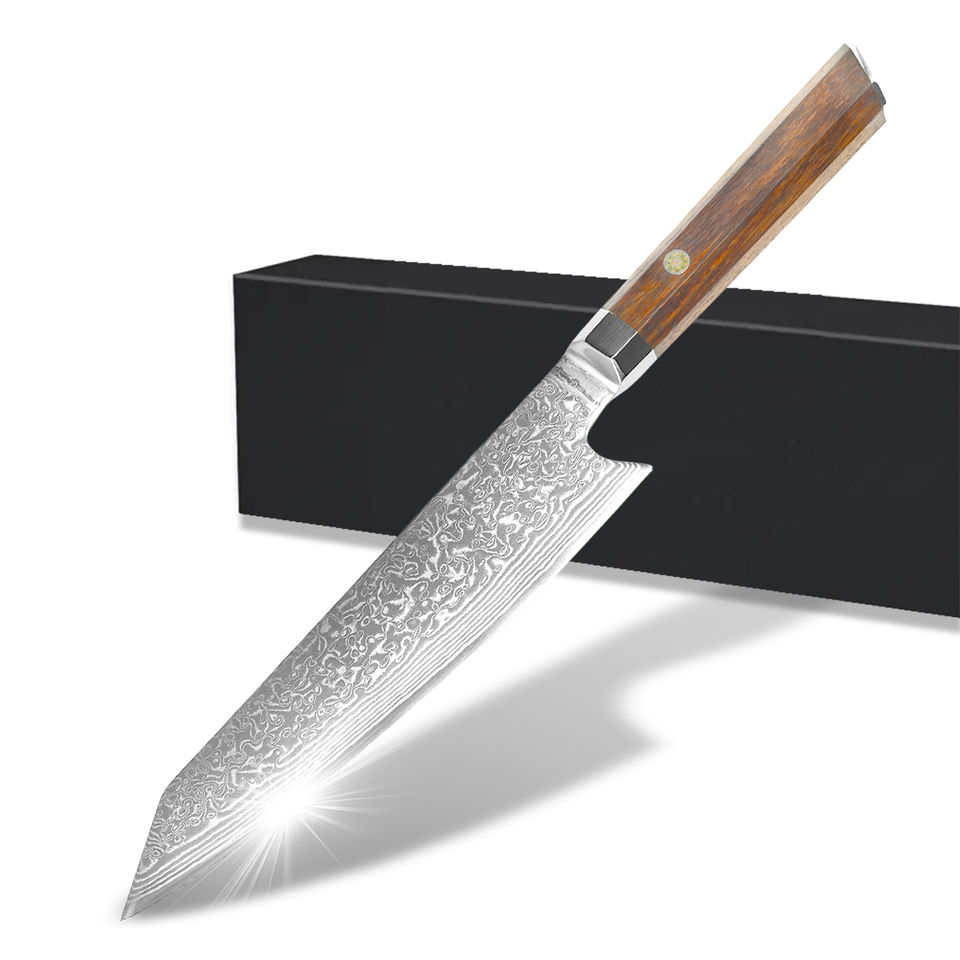 Couteau de chef en acier Damas japonais haut de gamme avec manche en bois Vente en gros Personnalisé de qualité supérieure OEM OMD Service