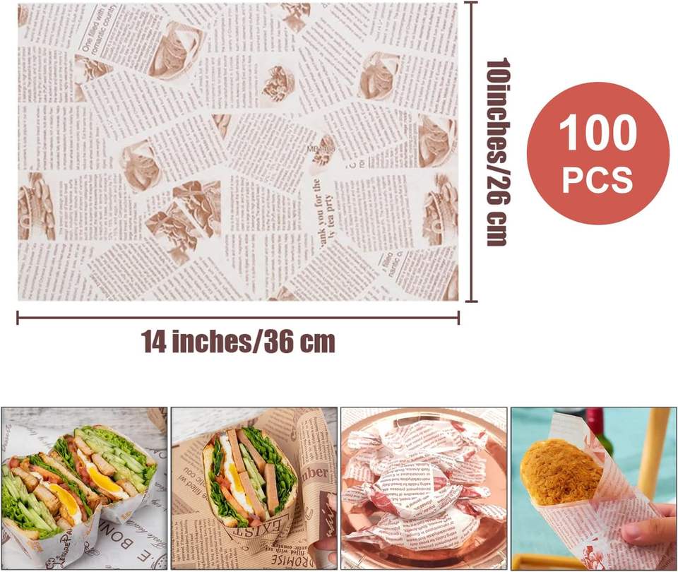 Vente en gros de papier d'emballage sulfurisé de qualité alimentaire pour sandwich à la cire avec logo imprimé personnalisé pour les aliments hamburger frites de poulet