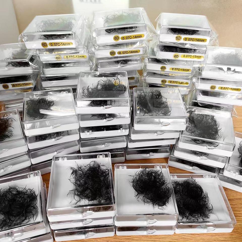 Vente en gros d'extensions de cils volume lâche en vison souple 3D-14D de marque privée personnalisée ventilateurs préfabriqués matériau CC Curl PBT de style naturel