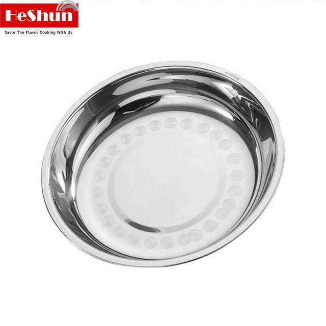 Wholesale Customized Restaurant Serving Tray Stainless Steel 304 Round Dinner Fruit Dishes Deep Plates