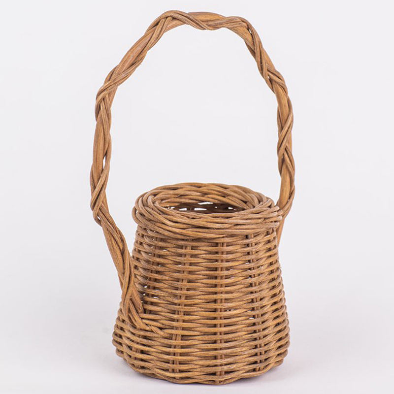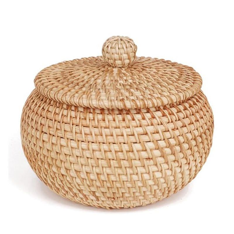Panier en rotin décoratif à double tonalité de couleur, forme ronde, avec deux poignées, pour le rangement et l'organisation, vente en gros personnalisée