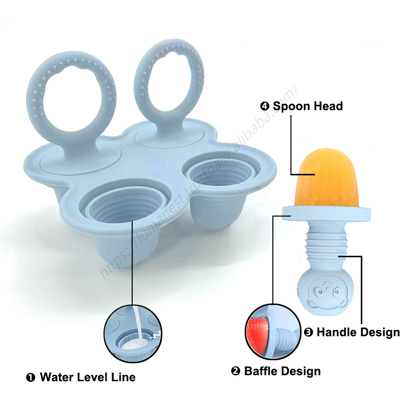 Wholesale Customized Silicone Popsicle Molds Toddlers Teething Relief Ice Tray Mold With Lid Teether Training Spoon