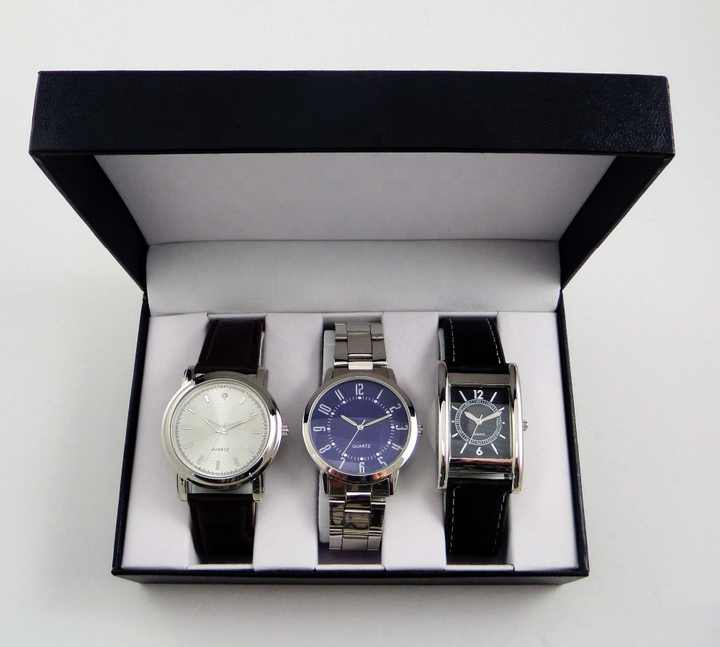 Wholesale Customized Three Styles Men Metal Quartz Watch Set Promotion Three Different Cheap Leather Mens Watches Gift Set