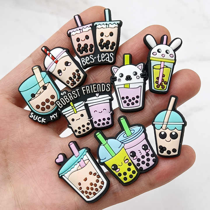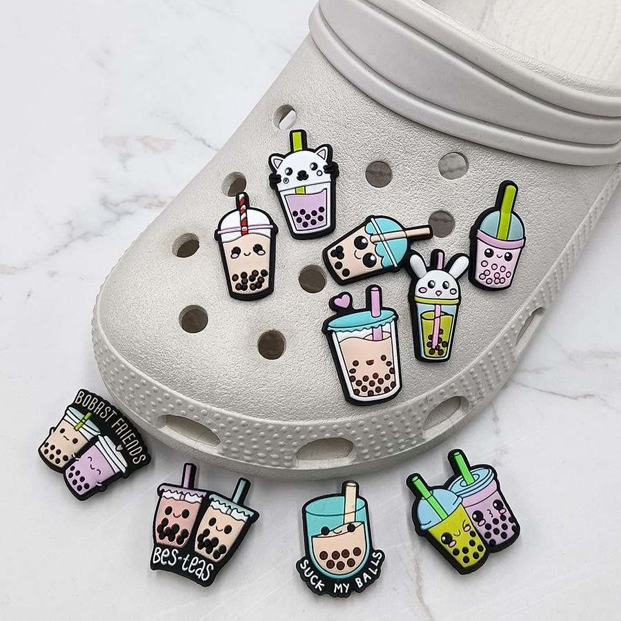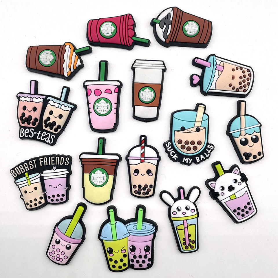 Vente en gros de chaussures de charme en PVC de thé au lait de dessin animé mignon boucles de chaussures originales enfants fête sabot en caoutchouc cadeau livraison directe