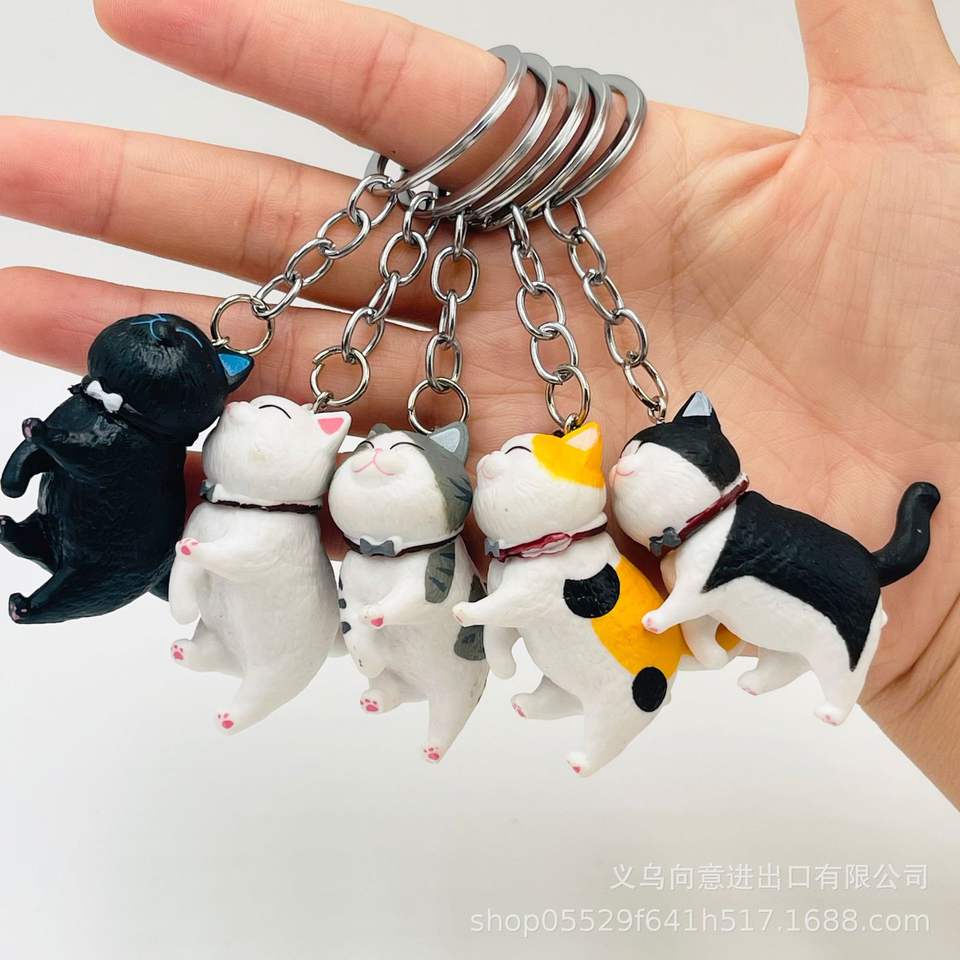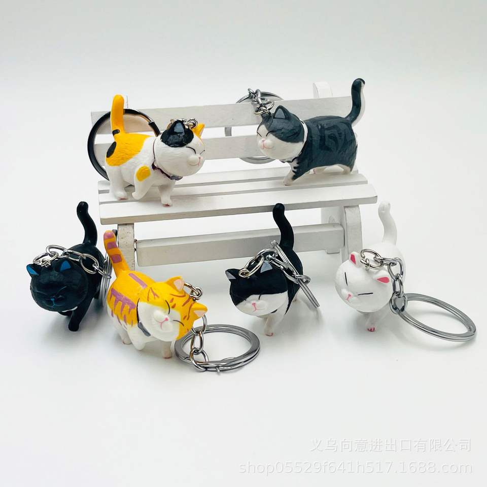 Product name:Mini cat figure with ring bell keychain